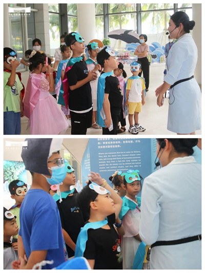 海底小纵队队员们在巴克队长的率领下,带着对海洋的好奇跟着宣教老师前往“南海鲸灵——馆藏鲸类标本展”参观。参观展览时,巴克队长提出了一个有趣的问题:“既然鲸也是靠肺呼吸的,那么它们睡觉的时候怎么呼吸呢?”“这个问题问得很好。”宣教老师竖起大拇指说道,“其实鲸在休息和睡眠时,还要保持一定频率的呼吸,它们在休眠时只关闭一侧大脑,另一侧大脑要有效运转,才能让鲸仍可以正常游动、呼吸以及警惕危险。”