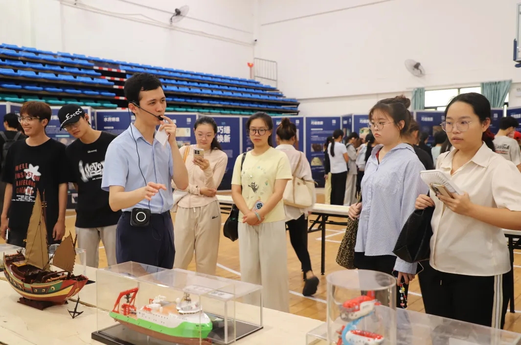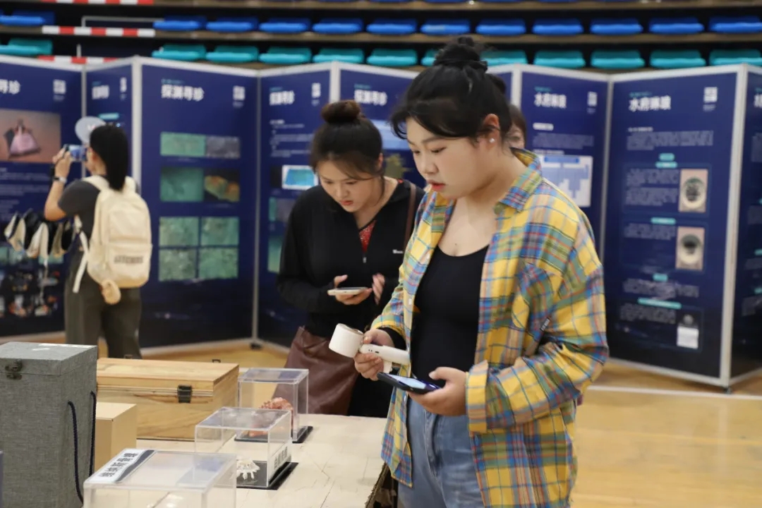 实物展品展示区的气氛更是热烈。学生们通过零距离观察文物复仿制品与海洋生物标本,感受到南海独特的生物物种,惊叹于古代工匠的高超技艺。载人潜水器模型吸引了众多学生的目光,更激发了他们探索深海的好奇心。