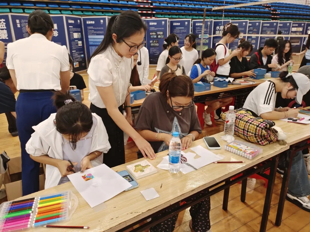 集章册打卡、冰箱贴DIY、文物修复盲盒体验等多个手工实践互动区成了整场活动的焦点。在工作人员的耐心指导下,同学们充分发挥创意,用彩笔在冰箱贴上绘出南海文物元素,集章册上的每一枚纹饰都记录着学生们对文化探索的印记。
