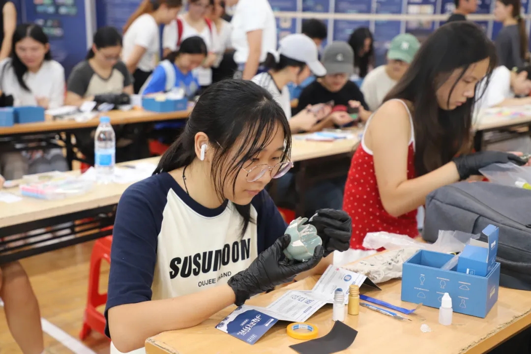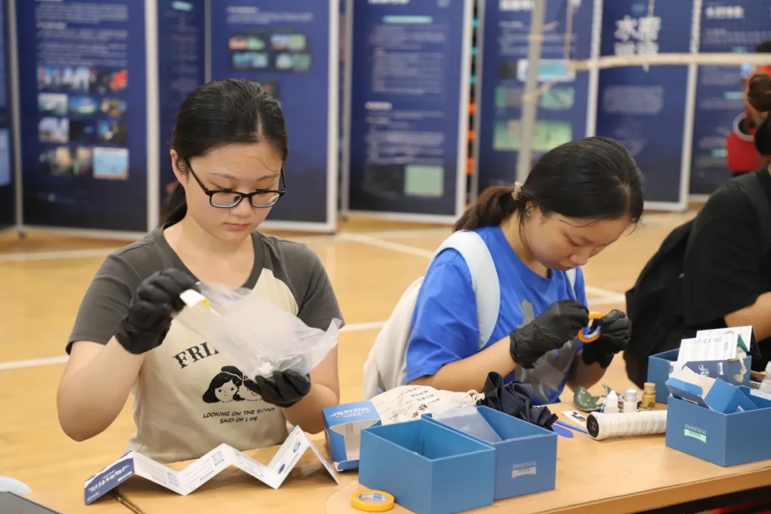 学生们手持盲盒,小心翼翼地拆开包装,取出“文物碎片”,按照工作人员指导的步骤进行清理、拼接、复原。过程中,大家专注投入,不仅化身“文物修复师”,在亲手操作中体验文物修复的独特乐趣,还进一步了解到南海宝藏的历史价值与水下考古的探索魅力,切实感受到深海考古背后的文化底蕴。