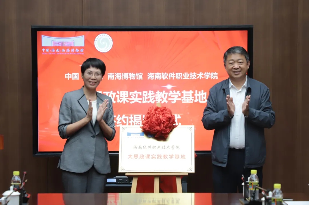 为充分运用社会大课堂,讲好思政课,提高大学生的思想政治素质,培养其社会实践及创新能力,2025年10月22日上午,在中国(海南)南海博物馆华光厅,举行中国(海南)南海博物馆与海南软件职业技术学院2025-2030年“大思政课实践教学基地”签约揭牌仪式。