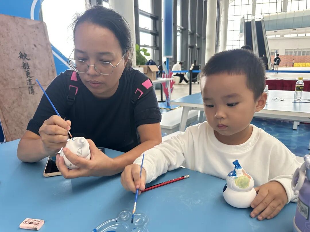 观众们以铅笔勾勒主体纹饰,墨色在水痕里晕染成心里秋天的模样;更有观众将几何线条融入菊瓣,让传统纹样长出新的枝桠。笔锋起落间,葫芦瓶身上的菊花或含苞待放,或凌霜盛开,把秋光都收进了这方寸瓷间。