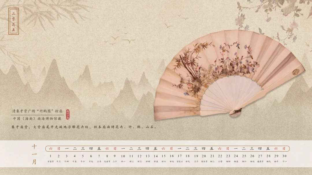 十一月,南南持续为大家奉上电脑端、手机端壁纸。看扇卷山色,将澹泊山光揽于屏前;赏鹤影翩跹,化作一幅灵动静谧的屏上水墨。