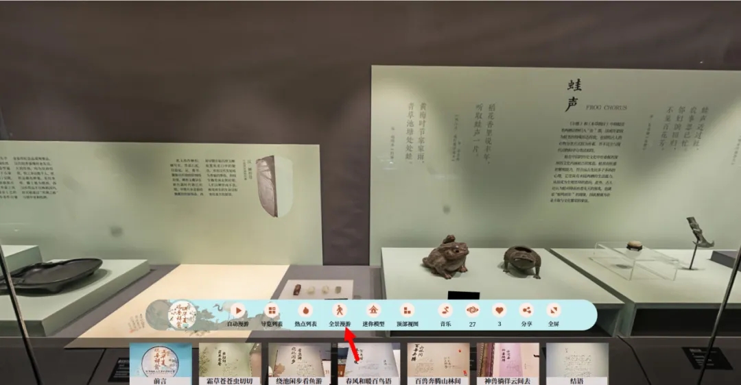 采用全景技术,复刻线下展览实景。您可自由“行走”于展厅之中,每一件展品与展厅布局都清晰可见,仿佛置身现场,沉浸式感受展览氛围。
