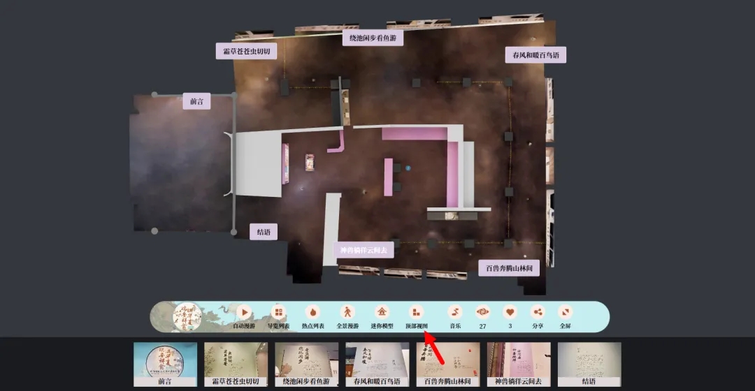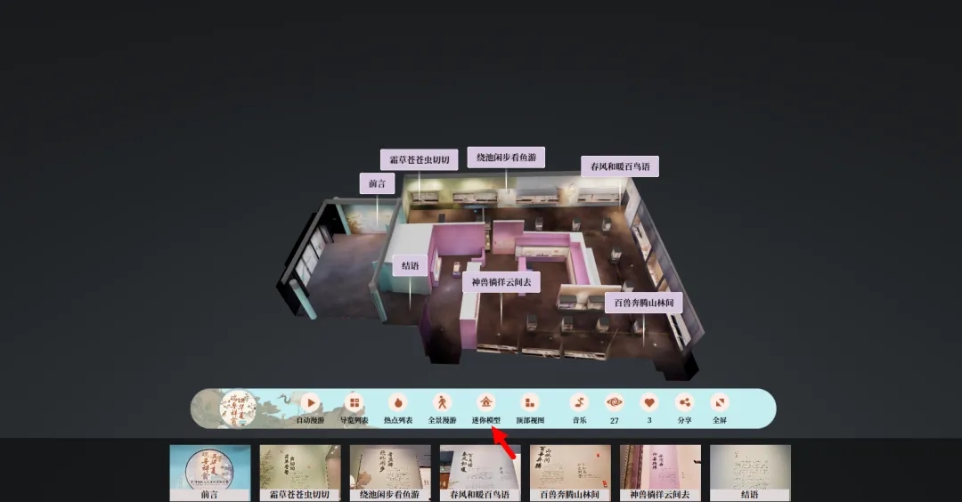 通过迷你模型、顶部视图及单元导览三大功能,一键快速切换至目标展区,轻松逛遍五大单元,高效解锁展览精华。