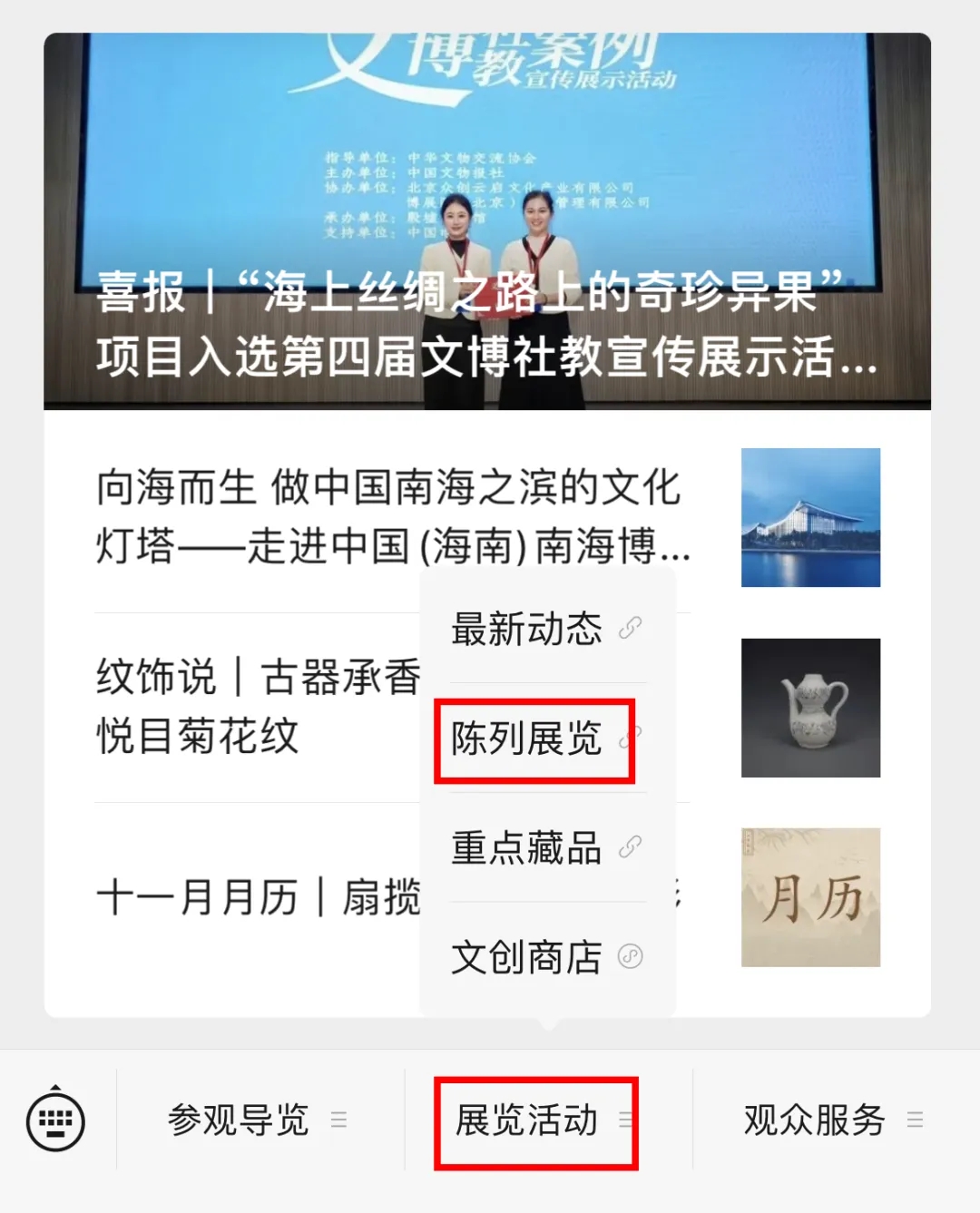 1.关注“中国(海南)南海博物馆”微信公众号。