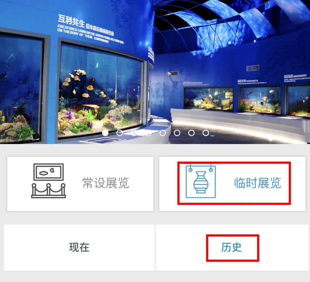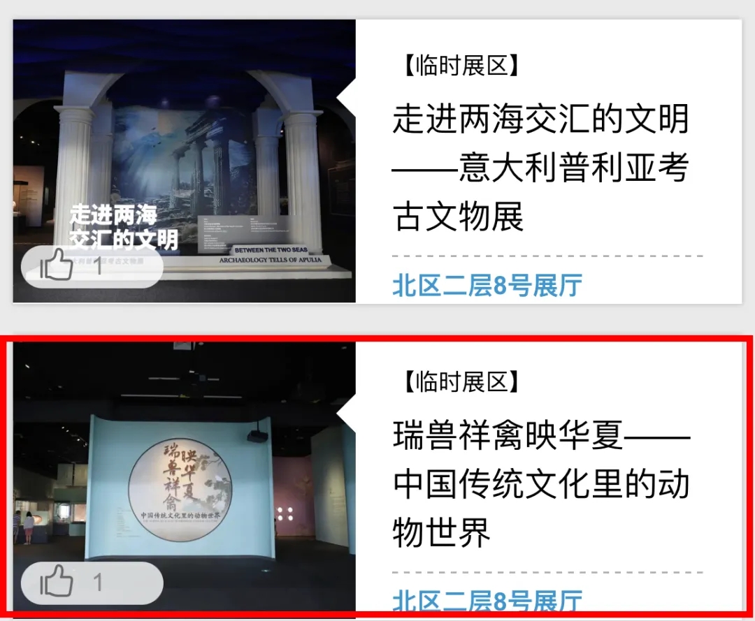 3.点击“临时展览”,选择“历史”浏览至底部,点击“瑞兽祥禽映华夏——中国传统文化里的动物世界”展览图片或名称进入简介界面。