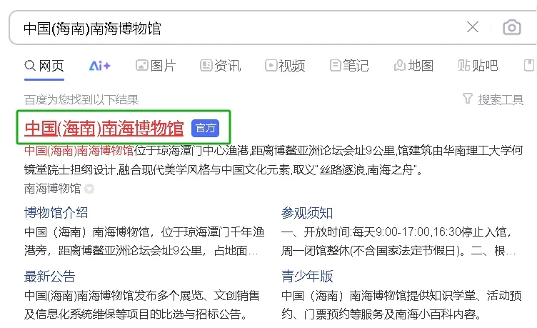 1.搜索“中国(海南)南海博物馆”官网并进入。