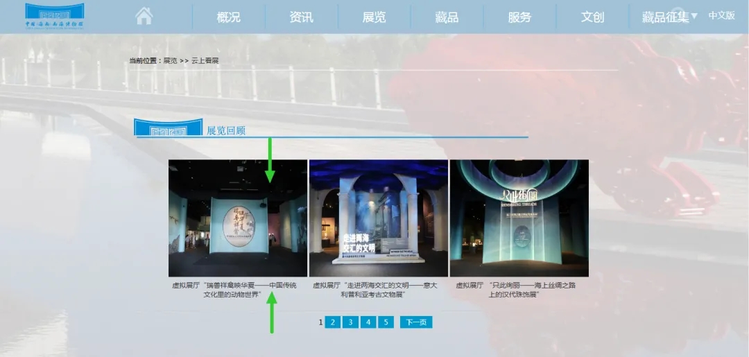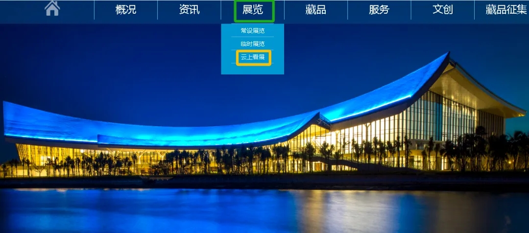 3.点击功能栏“展览”,选择“云上观展”。