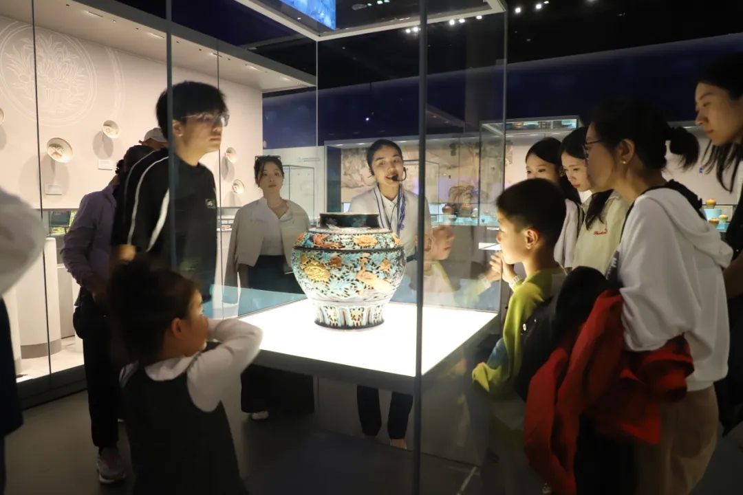 “原来芒果的原产地在印度等地,原来长颈鹿是跟随郑和船队来到的中原,真是太有趣了!”“那时的海上丝绸之路真是繁盛,我们眼前精致的珐华大罐、淡雅的青花真是美不胜收啊!”观众们听到讲解后,不禁发出感叹。