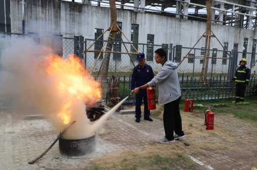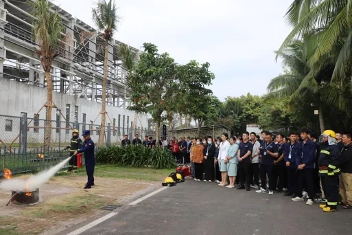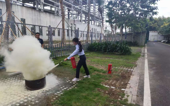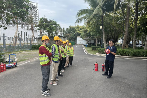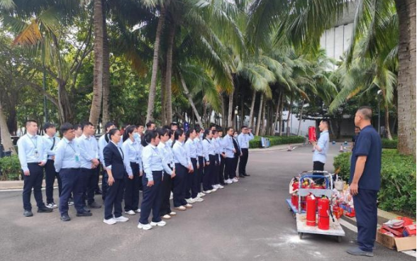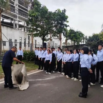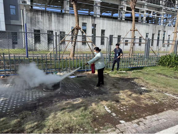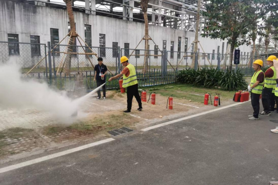 外包服务单位灭火器、灭火毯、防毒面罩实操轮训现场