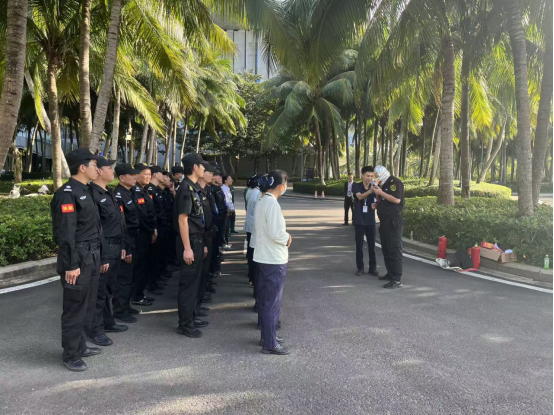 博鳌消防大队吴多子参谋对消防疏散演练情况进行现场点评