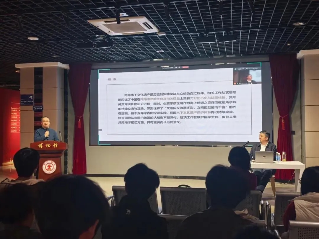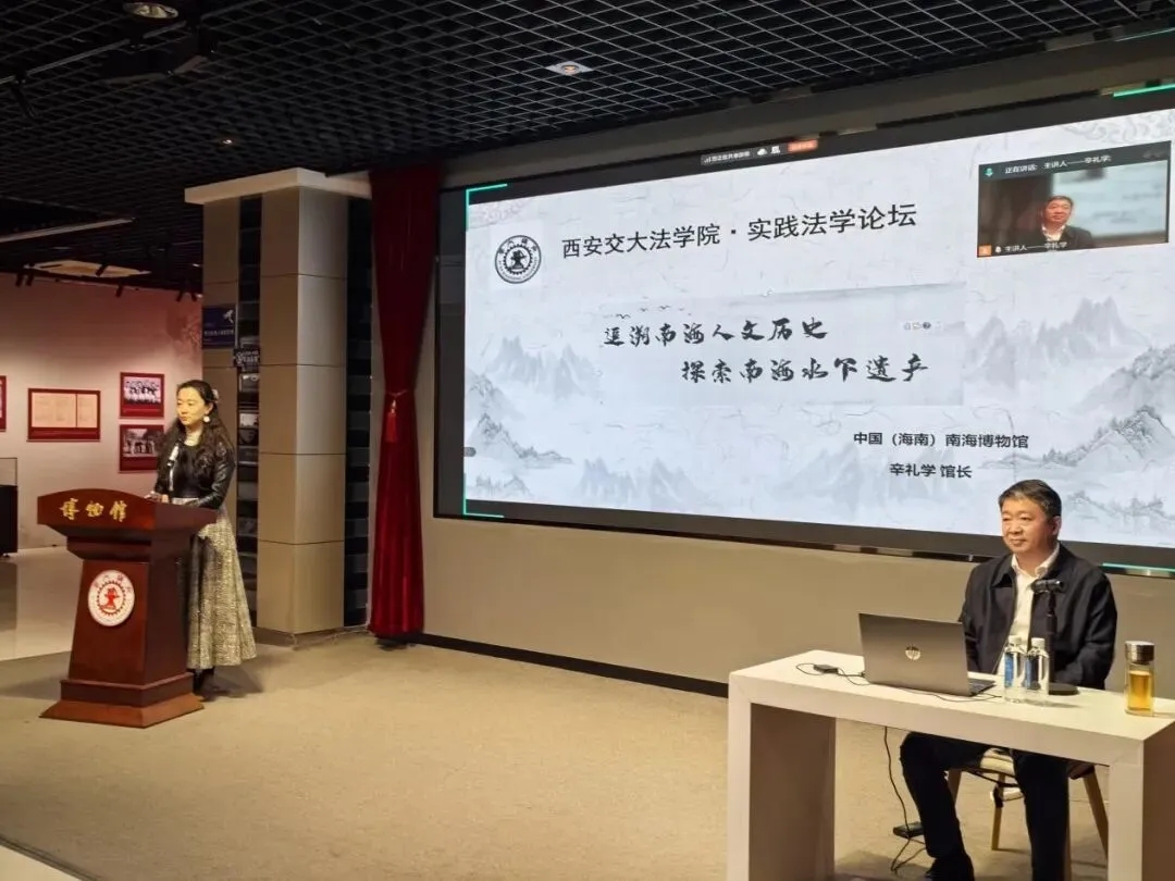 2025年12月10日,中国(海南)南海博物馆馆长辛礼学在西安交通大学博物馆开展“追溯南海人文历史 探索南海水下遗产”主题讲座,法学院副教授刘丽娜主持,档案馆、博物馆副馆长李一鸣作为与谈人,通过线上会议与线下博物馆会场相结合的方式,为师生呈现了一场兼具历史深度与法治视角的文化盛宴。