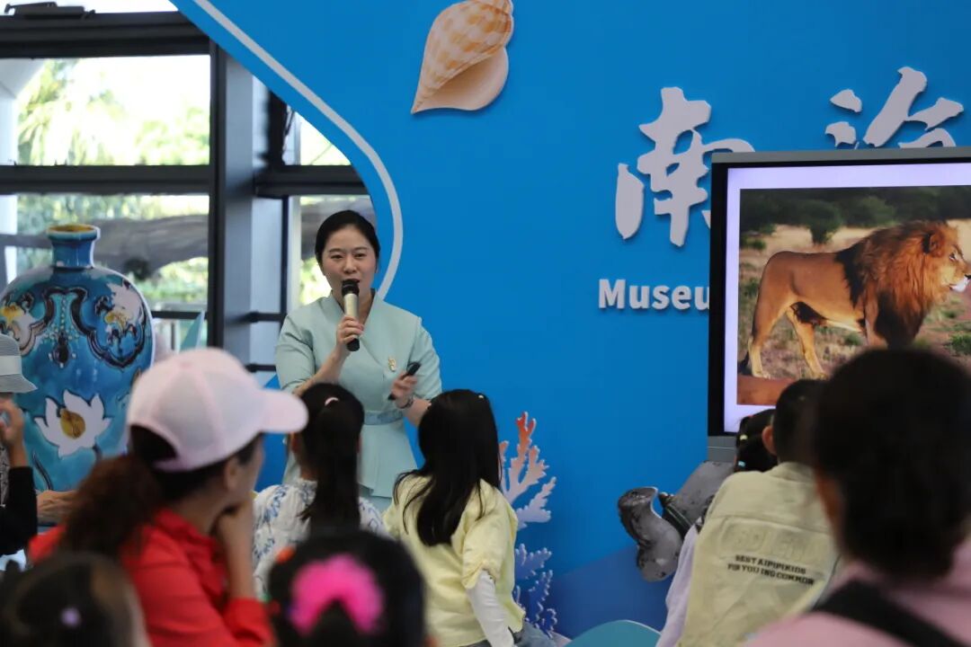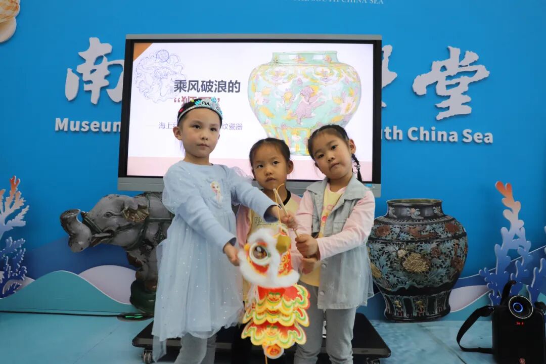 “‘狮’与‘事’谐音,绣球象征着祥瑞与喜庆,寓意好事连连、喜庆吉祥……”在南海博学堂,讲解员从南海西北陆坡一号沉船出水的珐华绿釉狮子花卉纹大罐讲起,一步步引出不同时期狮纹的演变及寓意,向观众们传递中华文化的包容性与创新性。