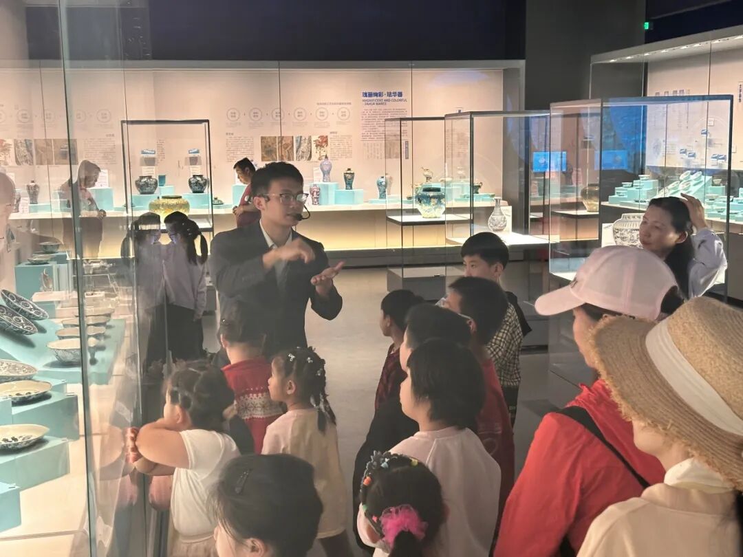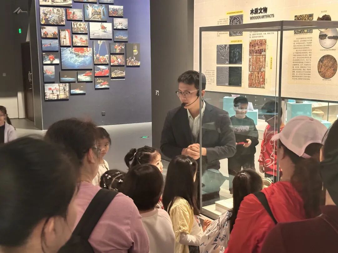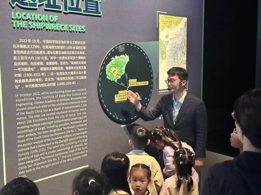 随后在“深蓝宝藏——南海西北陆坡一二号沉船考古成果特展”中,观众们找到了其他绘有狮纹的文物,在讲解员的解读下,深刻了解其中的吉祥寓意。