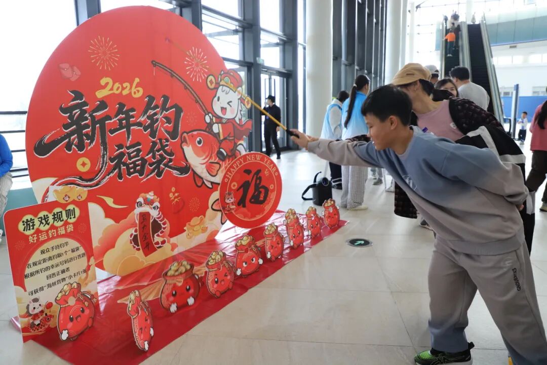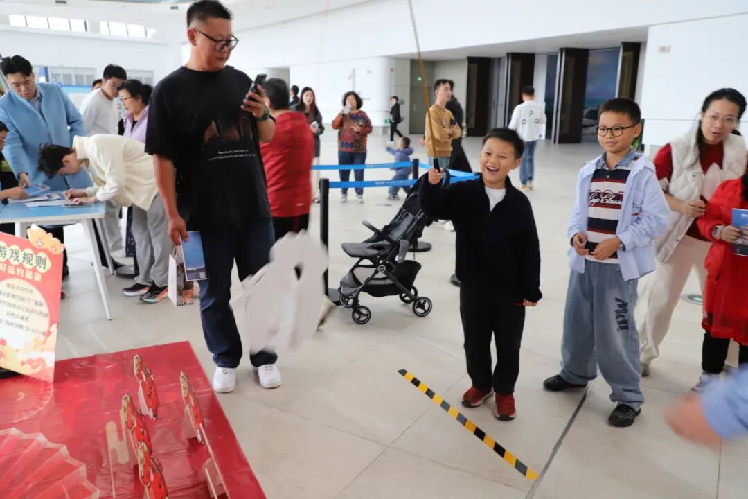 元旦期间,气氛热烈的民俗体验活动吸引了众多观众排队参与。3天内,共有400余名观众参与其中,无论是略需技巧的钓福袋挑战,还是深海考古知识问答,都令在场的观众兴致盎然。