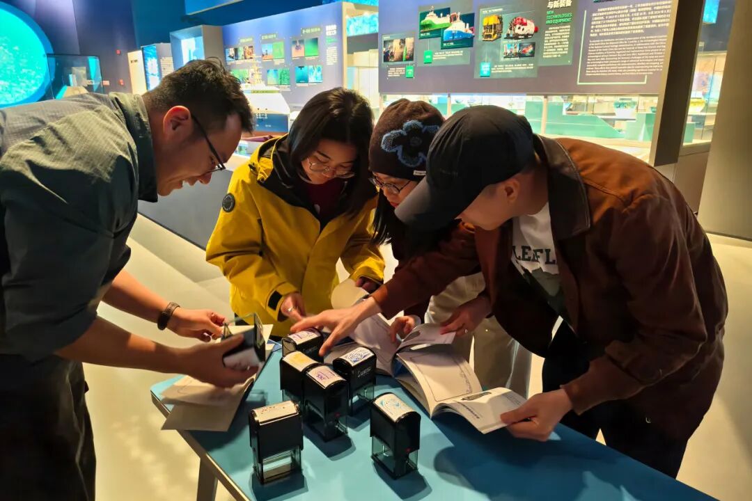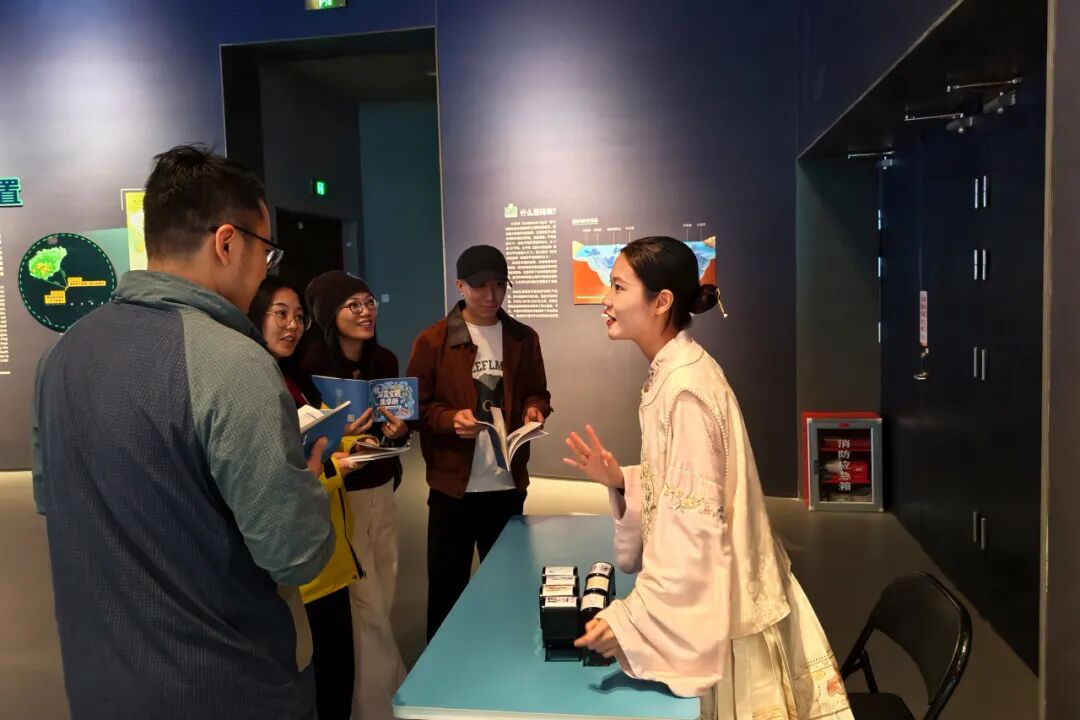 夜幕降临的南海馆依然热闹,这里的元旦系列社教活动并未结束。“深蓝宝藏主题集章册”带领大家夜游博物馆,找隐藏在展厅里的古装NPC互动,不一样的集章打卡体验让观众们耳目一新。