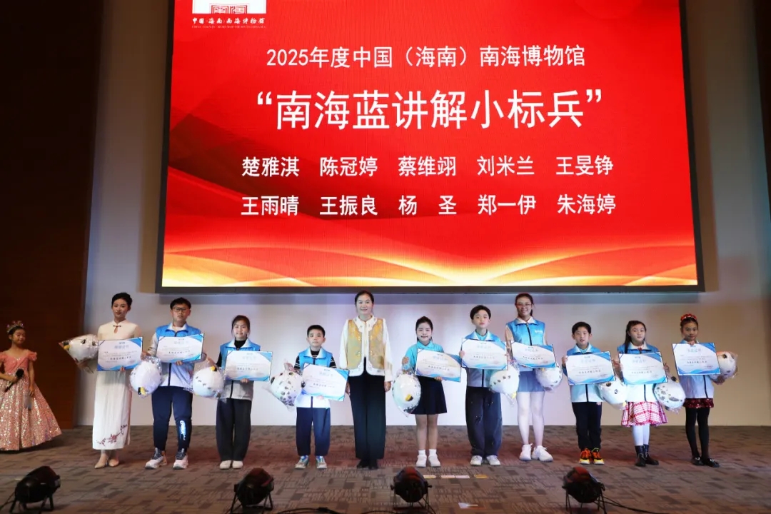 三位主持人依次揭晓获奖名单,黄春敏等10位志愿者获评“十佳志愿者”,楚雅淇等10位志愿讲解员荣获“南海蓝讲解小标兵”称号,辛礼学馆长、陈小冰主任分别为获奖者颁奖,台下掌声雷动。
