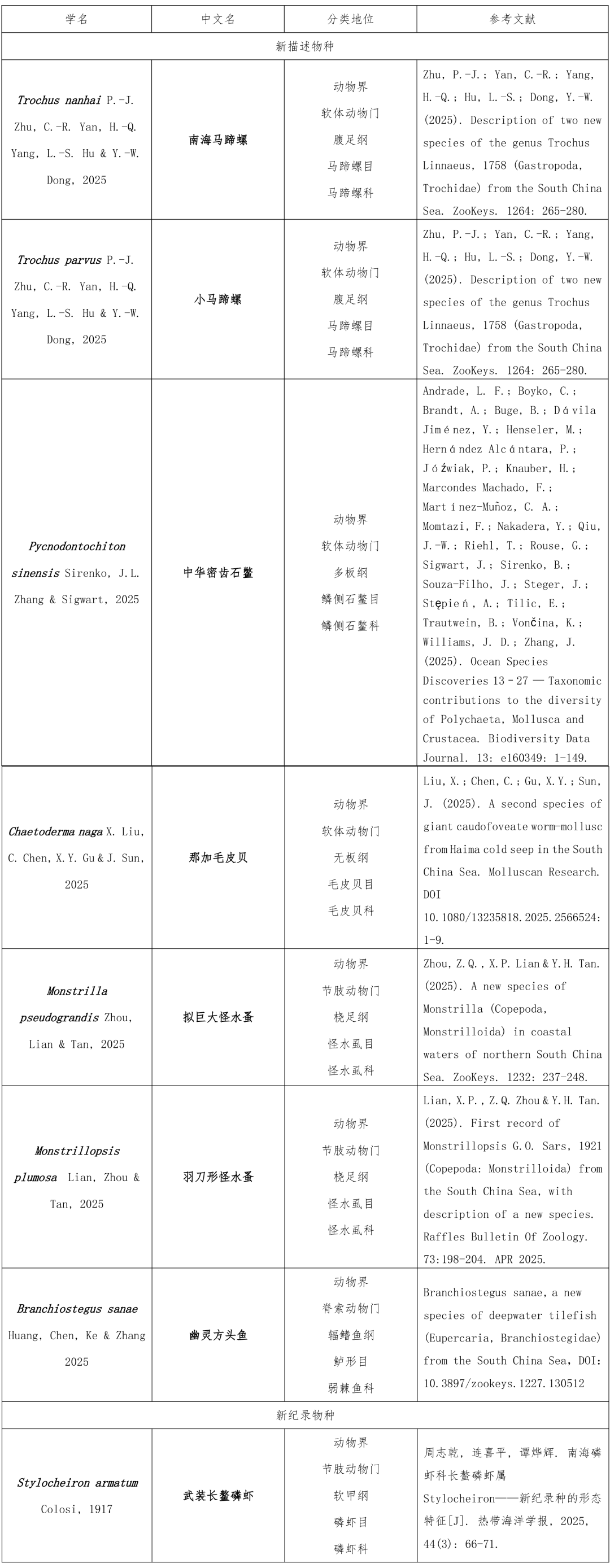 2025年南海新发现部分物种一览