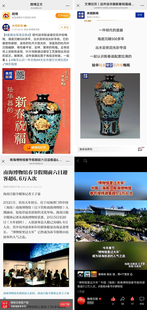 中国(海南)南海博物馆依托官方宣传平台,联合中央电视台、三沙卫视、海南日报等新闻媒体共同发力,在春节期间,媒体报道信息280条,非媒体报道信息15169条,全网评论量2983,点赞量2468,阅读数3026783,影响力颇为可观。
