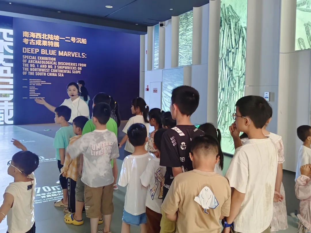 在“深蓝宝藏——南海西北陆坡一二号沉船考古成果特展”,讲解员以珐华彩、红绿彩、乌木等出水文物为切入点,细致解读其工艺特征、纹饰意蕴与器型风格,带领观众穿越时空,感受明代海上丝绸之路双向流动的历史脉搏。