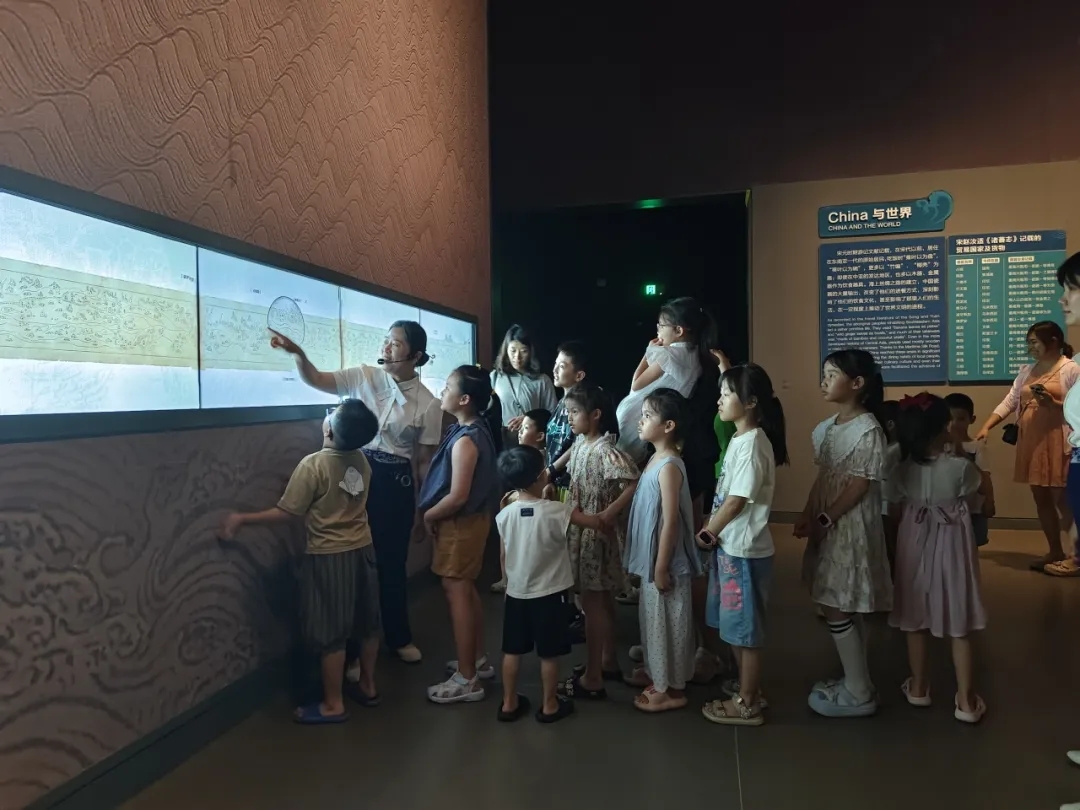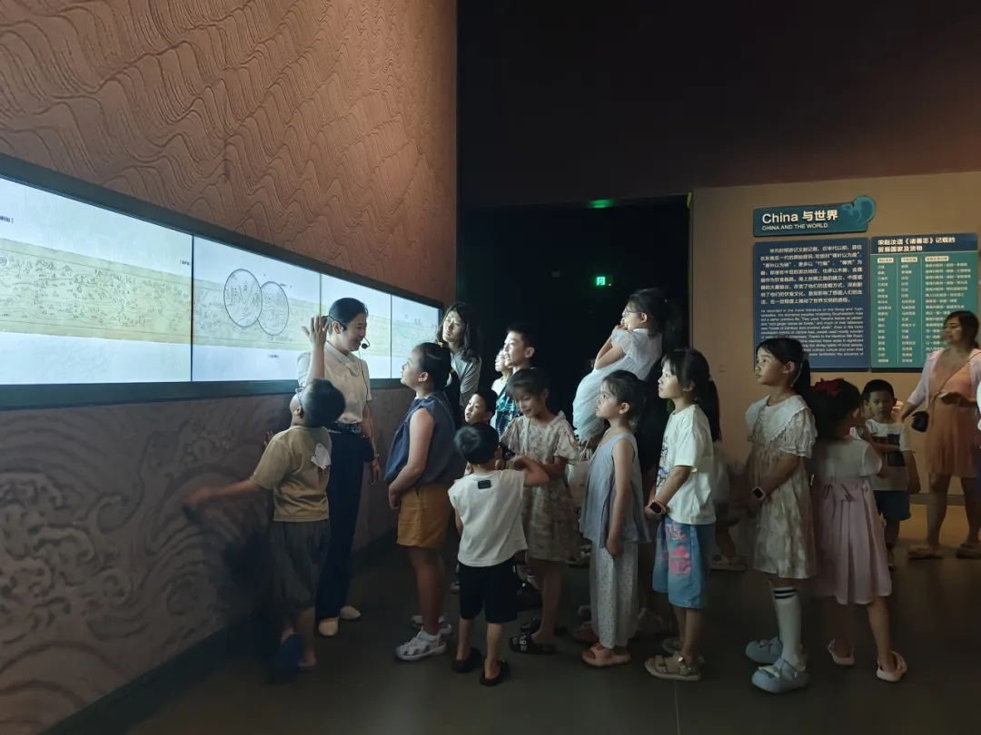 走进“八百年守候——西沙华光礁Ⅰ号沉船特展”,讲解员通过对《郑和航海图》的生动解读,引出明代各国之间的文化交流与物种引进,为后续的课程学习埋下伏笔。